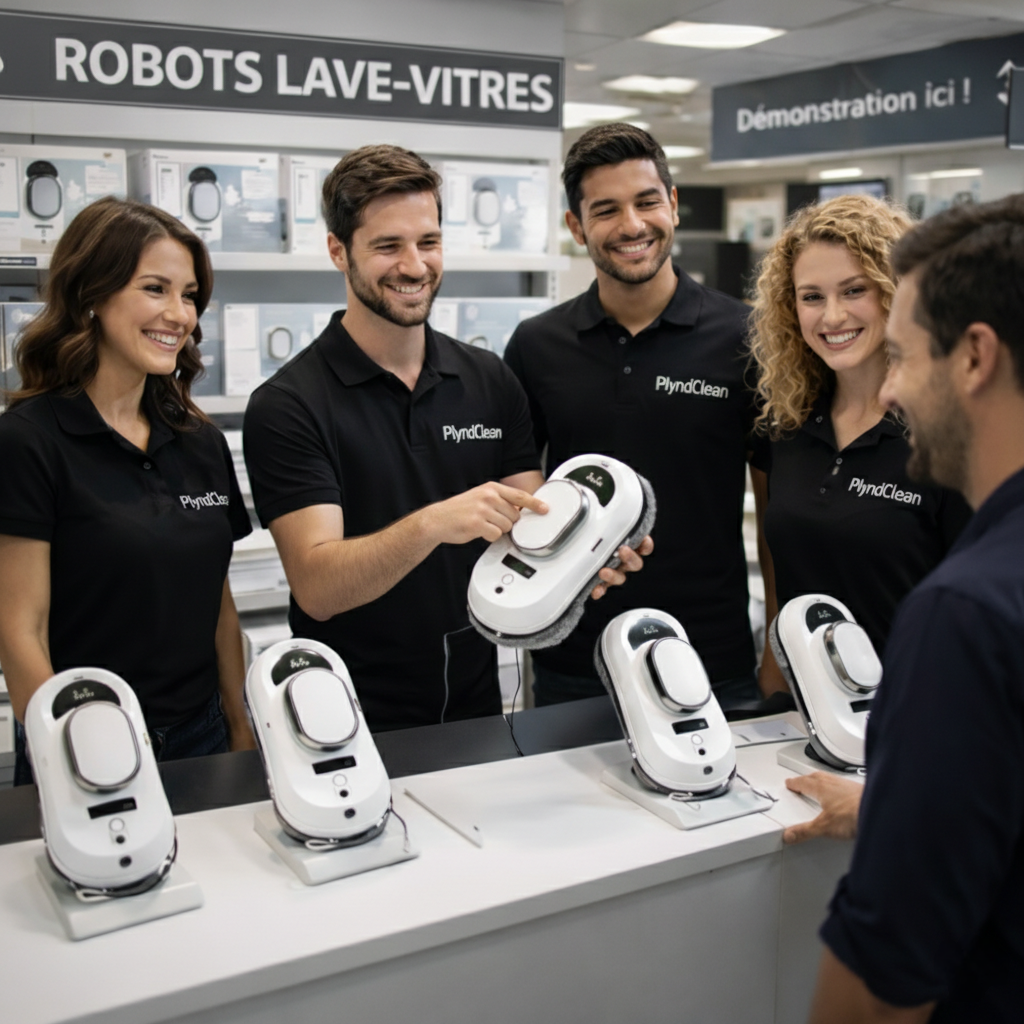 Oui. Le robot Plyndclean est compatible avec la majorité des surfaces vitrées : fenêtres intérieures et extérieures, baies vitrées, miroirs, cabines de douche, carrelage lisse et même verrières. Il suffit que la surface soit plate, propre à l'aspiration et non texturée.